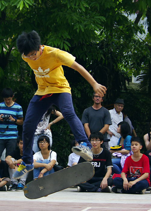 Tại các công viên, khu vui chơi công cộng, các nhóm chơi patin thường tụ tập biểu diễn bay vượt các chướng ngại vật, trượt inline và xoay vòng trên không